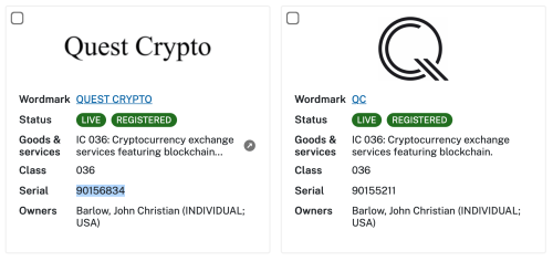 The purchase of this trade mark name “Quest Crypto” includes the work mark QC as seen in the images attached; and the domain name Questcrypto.com; and the associated email addresses; and the X account.